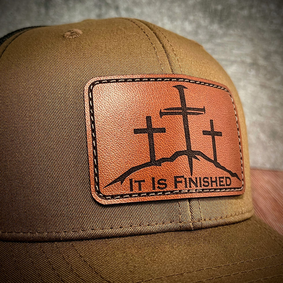 It Is Finished - Navy & Caramel Curved Trucker